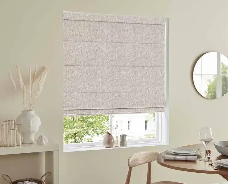 Roman blinds do what curtains can’t: stay neat, look soft, and feel smart. They’re especially great on smaller windows, where their clean folds add just enough detail without the bulk. With fabric layering and optional blackout lining, they give you light control and privacy where you need it. And in Dubai, where the sun means business, they help keep your space cool and calm, one fold at a time.